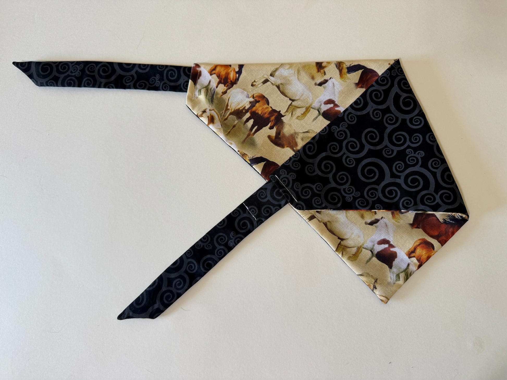 Maya’s Horsing Around features a charming horse print paired with a fun black patterned fabric — perfect for pets who love the outdoors, barn visits, trail walks, or just bringing a little western flair to everyday life 🐴🤎