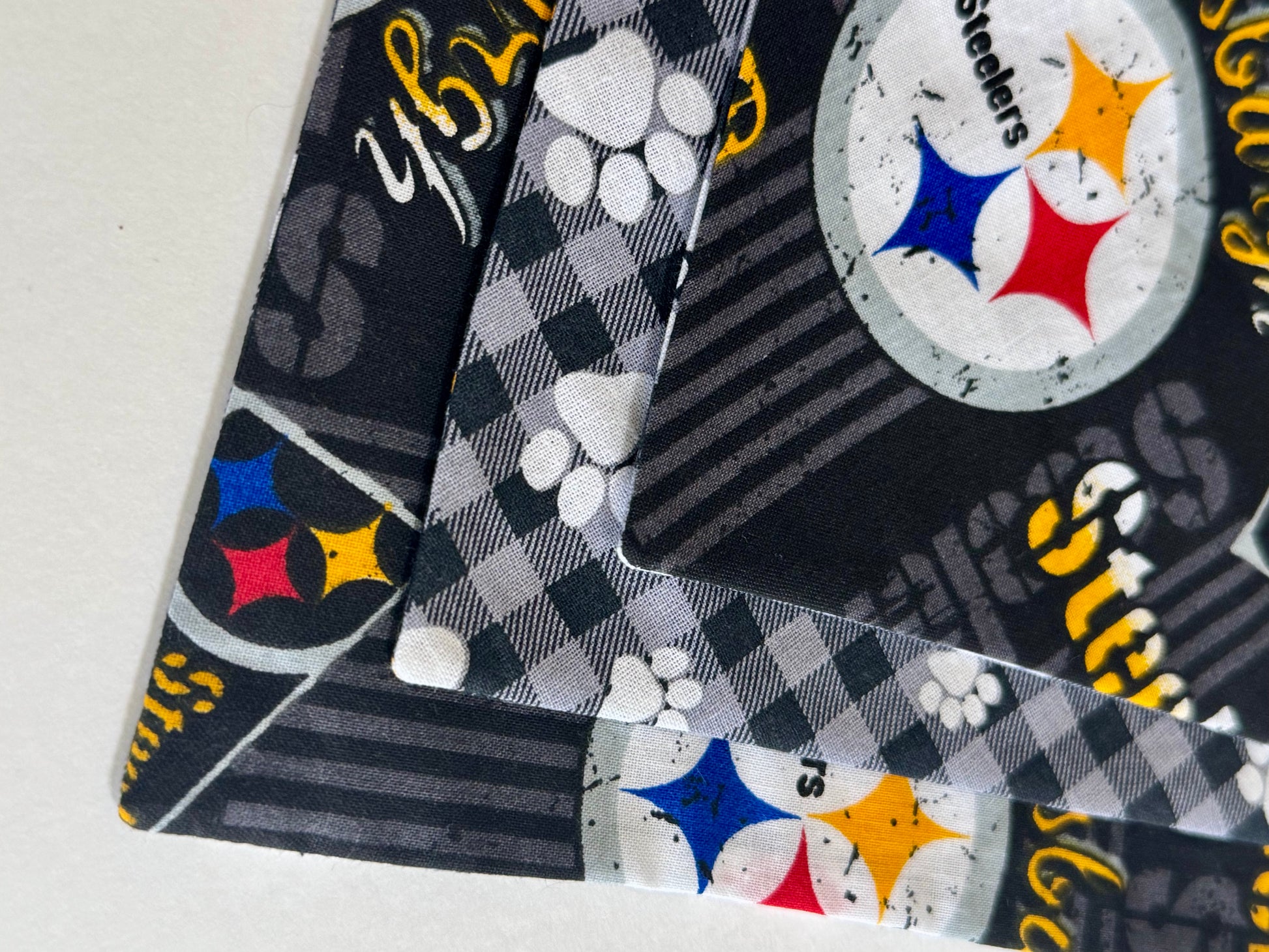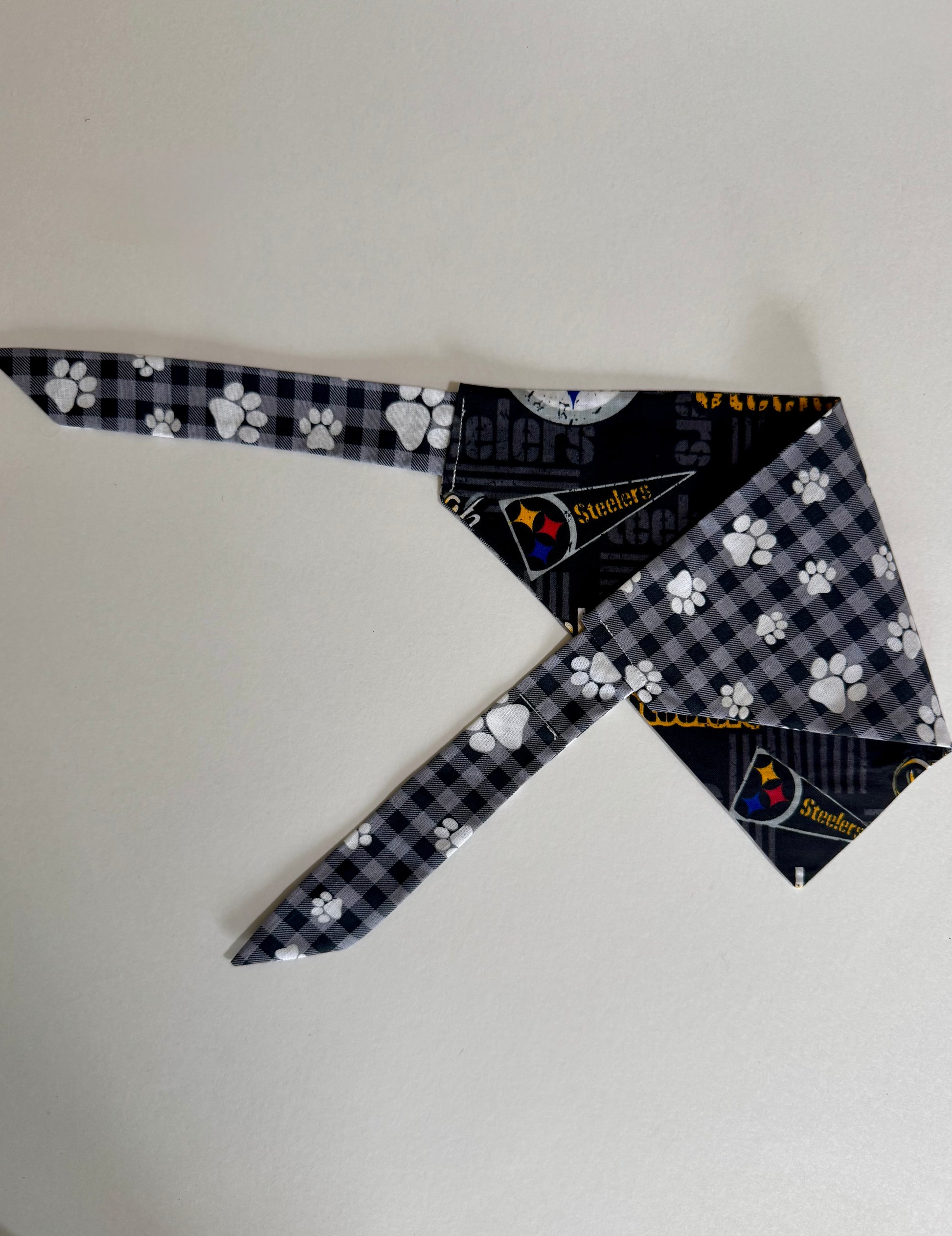 Maya’s Pittsburgh Football Bandana features your favorite team paired with a plaid paw print pattern! The perfect way for your pet to show team spirit and feel like part of the game day crew!