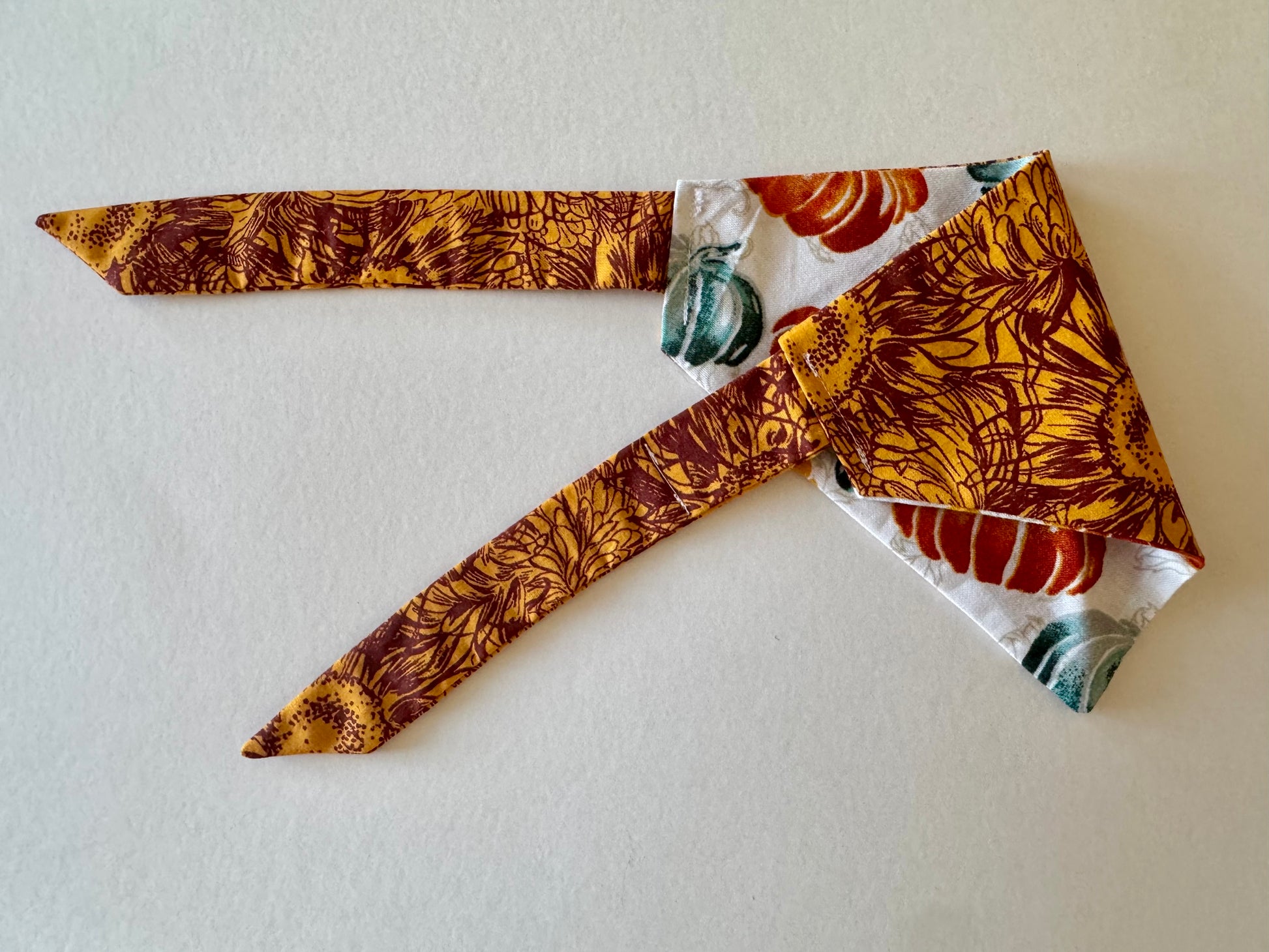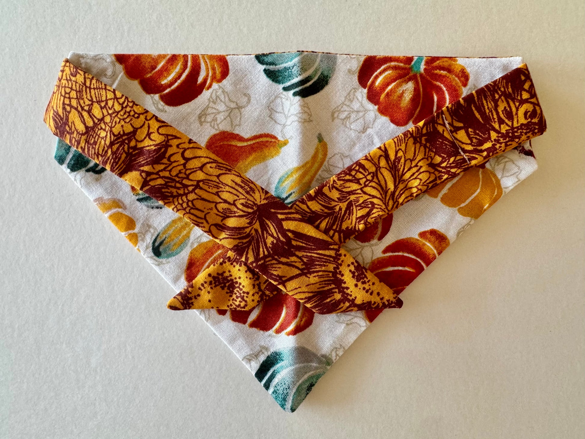 Bring autumn charm to your pet’s wardrobe with Maya’s Pumpkin Patch! This reversible bandana gives you two festive looks in one—pumpkins on one side and fall florals on the other. Perfect for pumpkin patch visits, cozy fall walks, or holiday gatherings, this bandana will have your pet looking picture-ready all season long.