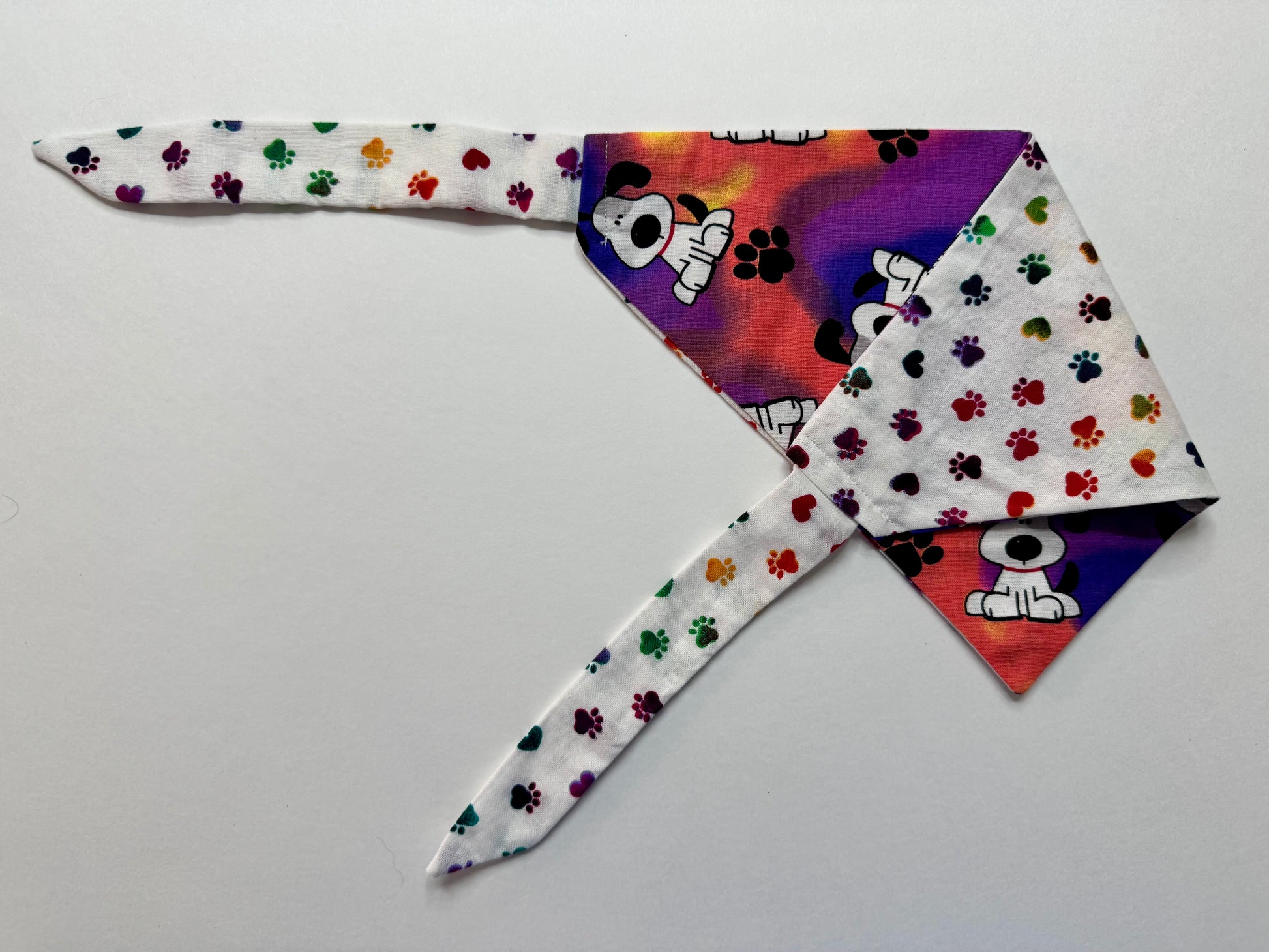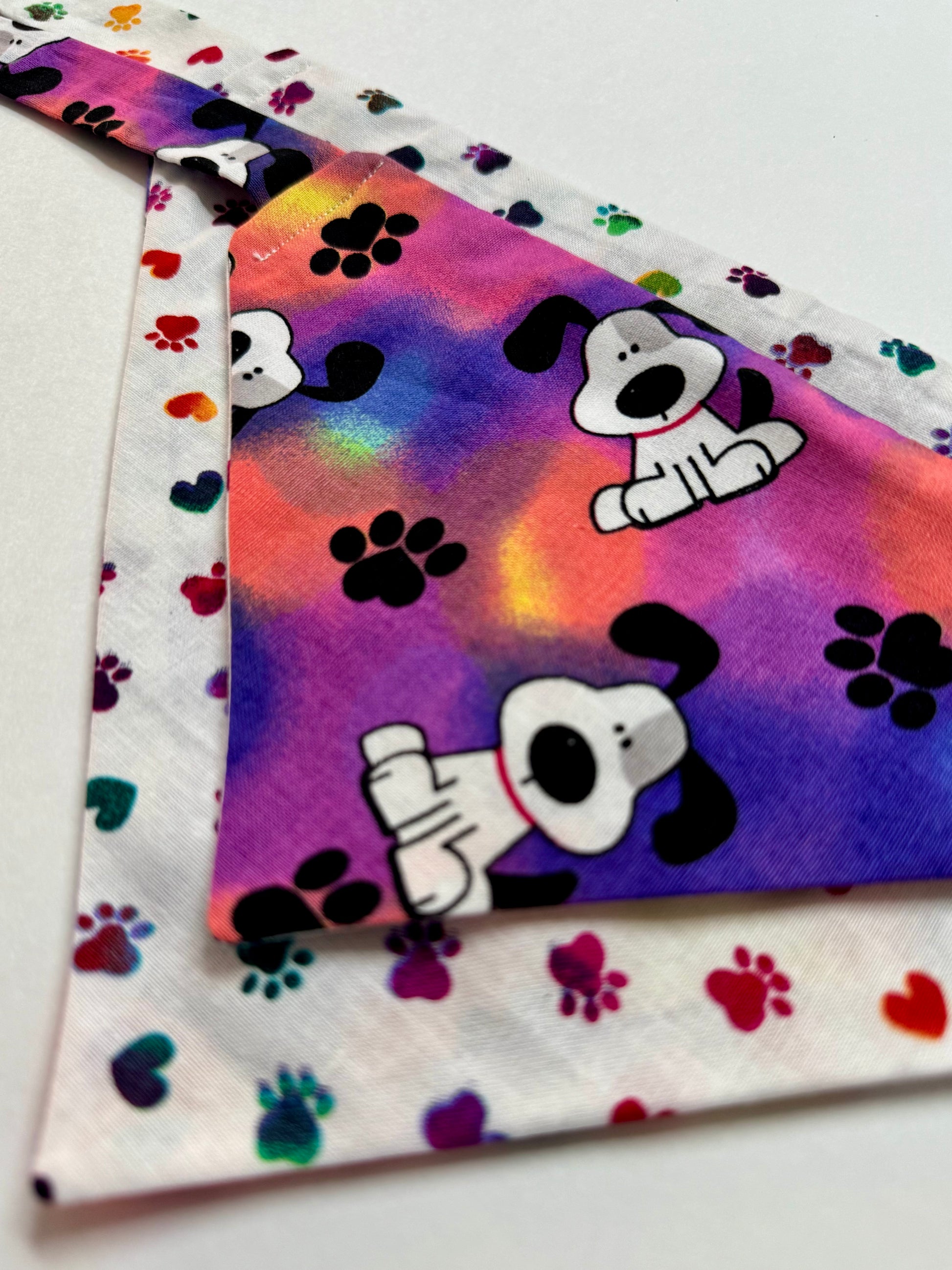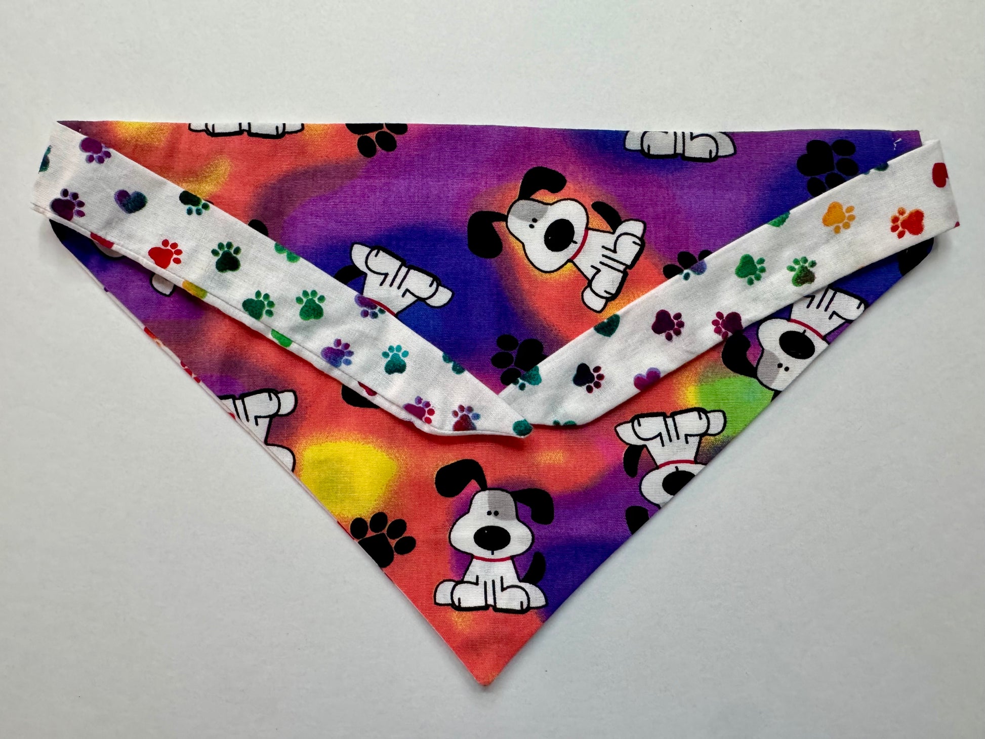 Fun and funky! This bandana is colorful and cheerful. Reversible.