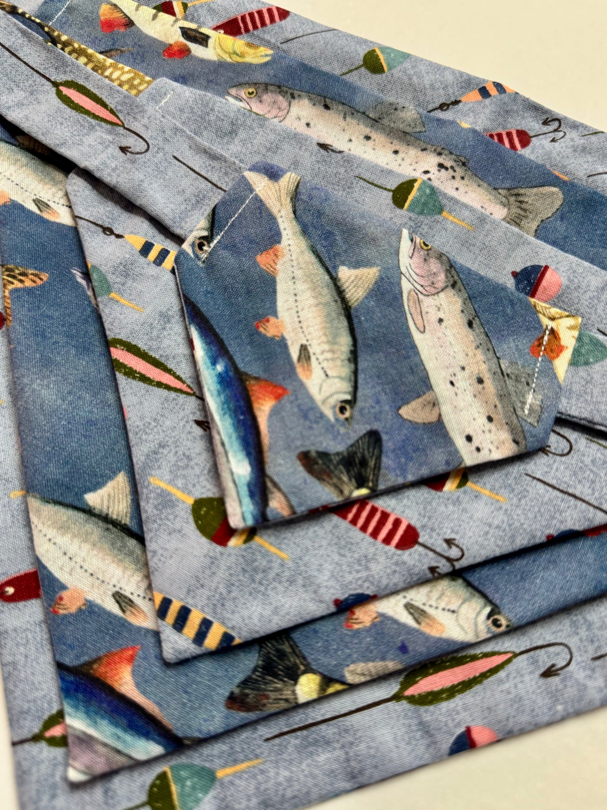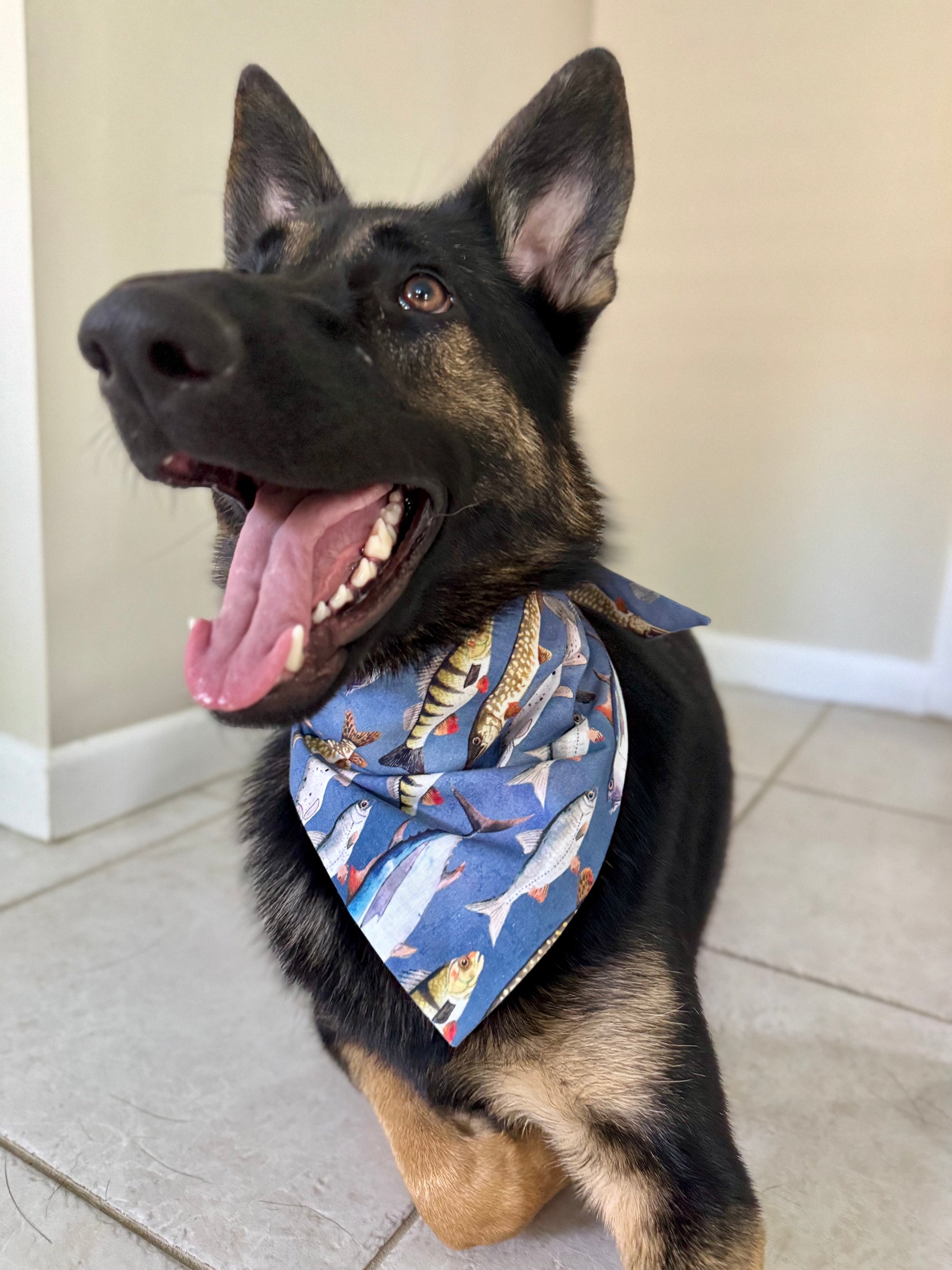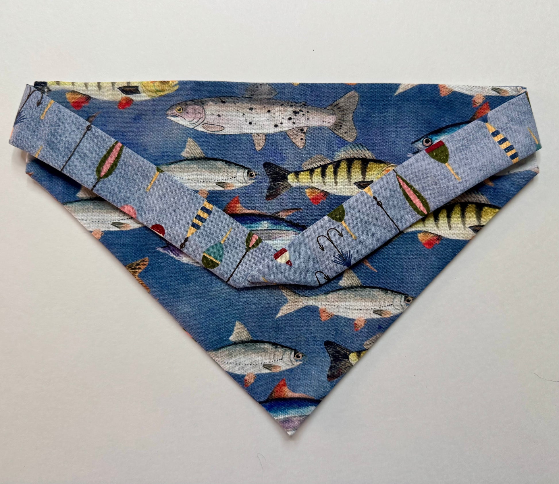 A perfect pet bandana for your pet that loves to eat fish, go fishing, or is always being fishy! Reversible.